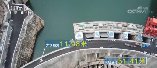 乌东德水电站的拦河拱坝高270米,相当于96层楼高。同时也是世界最薄的300米级双曲拱坝,大坝底厚51.41米,大坝最薄部分仅有11.98米。