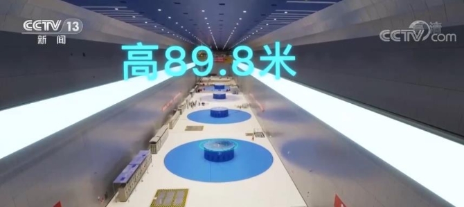 乌东德水电站的左右岸地下电站主厂房分别长333米、顶拱跨度32.5米、高89.8米,开挖高度位居世界第一。单个地下电站厂房的总容积比水立方还要大。