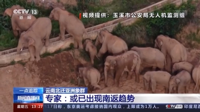 另外一位专家组成员、云南大学生态与环境学院教授陈明勇表示,现在象群往南返回,他不担心象群迁移这一路上的食物,但他提醒,综合连续几天的监测情况看,象群活动时间明显提前,比如之前的昼伏夜出,现在改为下午出动,甚至中午就下山觅食,另外象群活动频次也明显增加。