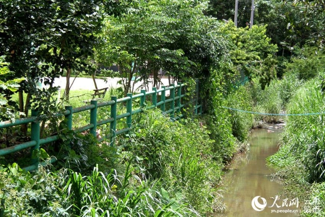 与其他村寨不同的是,一道绿色防护栏将整个村子环抱其中。