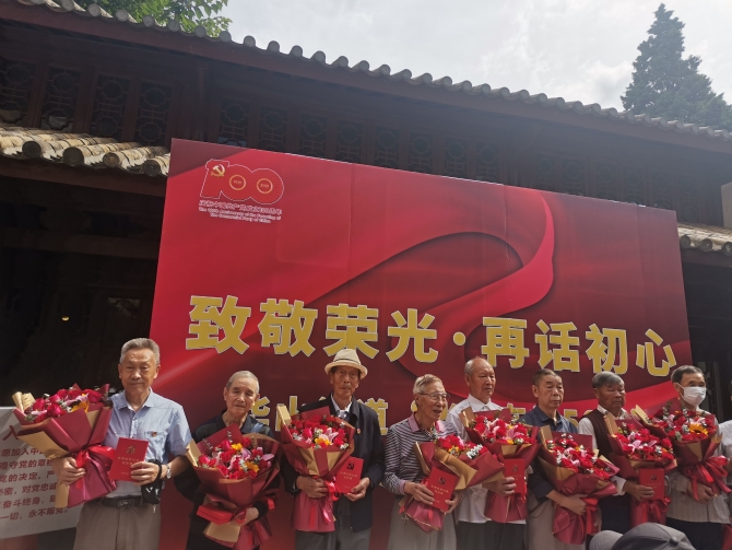 昆明信息港讯 记者李红鸾 值此中国共产党成立100周年之际,根据中共中央《关于做好“光荣在党50年”纪念章颁发工作的通知》精神。为做好分批次颁发“光荣在党50年”纪念章工作, 6月20日,华山街道在朱德旧居举行第一批次纪念章颁发仪式。