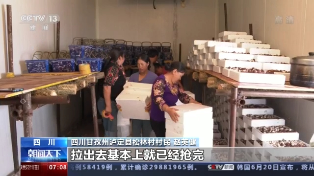 四川甘孜州泸定县松林村村民 赵英健:现在几个小时,一天就到北京上海了,好快的物流嘛,销路是不愁,每天都是供不应求,拉出去就基本上就已经抢完。