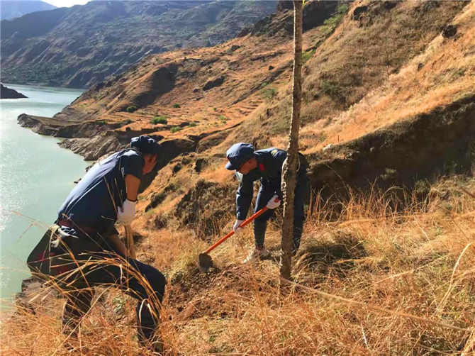 在渡口江边,学员们亲手为这片光荣的土地种下了象征英雄的木棉树。相信在不久的将来,火红的木棉花朵将会盛开在金沙江畔,成为英雄故事最好的述说者。
