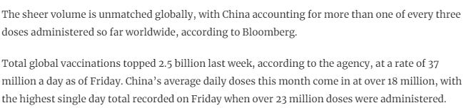 中国新冠疫苗接种数量和接种速度让外媒感叹!