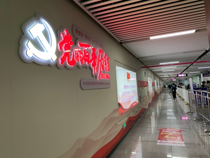 昆明信息港讯 记者朱俊杰 近日,不少市民发现地铁三号线潘家湾站变样了,站内增设了许多党史教育展板,引得市民驻足观看。6月22日,由中共昆明市委党史学习教育领导小组办公室推出的党史学习教育主题地铁车站及党史学习教育地铁专列正式上线与市民见面。