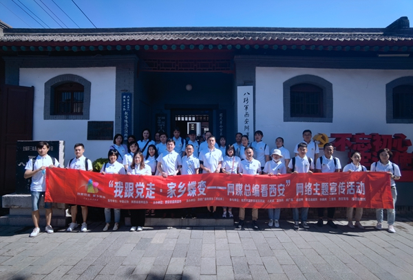 由中记协、陕西省委网信办指导,西安市委网信办主办,西安广播电视台承办的“我跟党走·家乡蝶变——网媒总编看西安”网络主题宣传活动今天(6月22日)开启第一天行程。上午,采访团一行来到八路军西安办事处纪念馆,重温革命历史,继承和发扬革命精神。