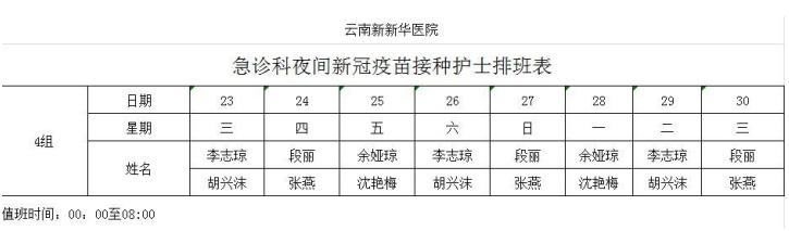 新华医院6月23—6 月30日每天凌晨 00:00—上午08:00疫苗接种值班表
