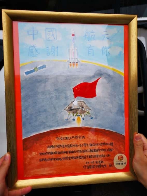 交流结束后,培侨书院向航天科学家团队赠送了一个精美画框,上面写着8个大字:“中国航天,感谢有你”。科学家团队则回赠了天问一号探测器缩比模型。