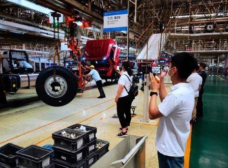 采访团来到位于西安经开区的陕西汽车控股集团有限公司(以下简称“陕汽”),在这里感受到西安先进制造业的飞速发展,一年多来,陕汽深入践行习近平总书记“新模式、新业态、新技术、新产品”的指示要求,推进混合所有制改革,让集团瘦身健体、轻装上阵,不断进行产品创新和技术突破,今年1-5月,陕汽控股生产各类车辆11.7万辆,同比增长36.1%;销售11.8万辆,同比增长38.4%。实现工业总产值488.5亿,同比增长36%。