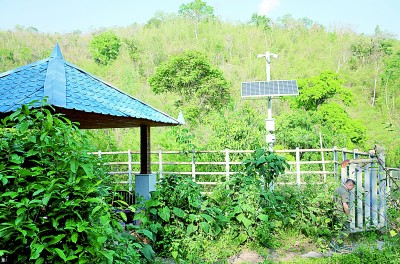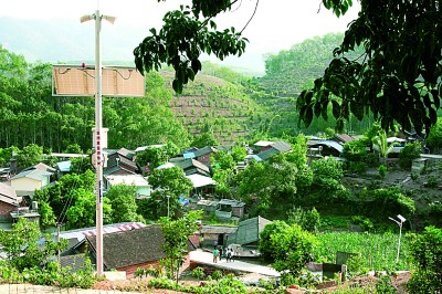 竖立在景洪市倒淌箐村村口的防象预警广播塔。