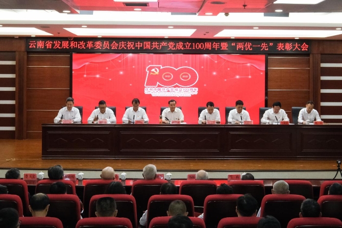 6月28日,云南省发展改革委召开庆祝中国共产党成立100周年暨“两优一先”表彰大会。会议强调,全委党员干部要铭记党的光辉历史,不忘初心、牢记使命,从党的百年奋斗史中汲取前进力量,坚定理想信念,赓续红色血脉,发扬光荣传统,为进一步当好省委省政府重要参谋助手、服务保障云南高质量跨越式发展、助力全面建设社会主义现代化汇聚磅礴力量。