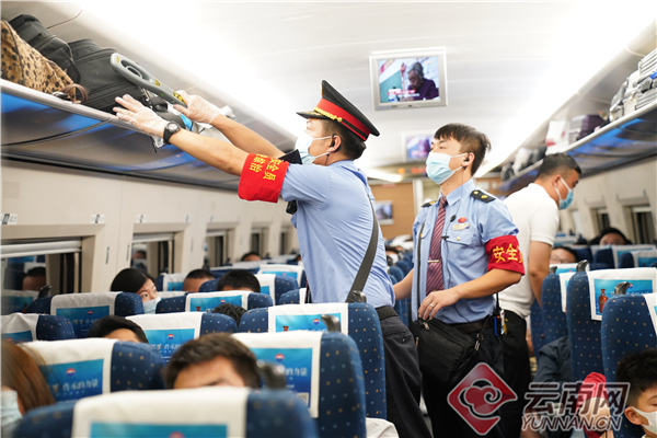省际间恢复重联昆明南至北京、上海、广州方向动车各1对;增加大理至成都、重庆、广州方向重联动车各1对;周末增开昆明至宣威临客1对,昆明至富宁、普者黑、弥勒临客各2对;重联昆明至临沧、丽江方向动车各3对。