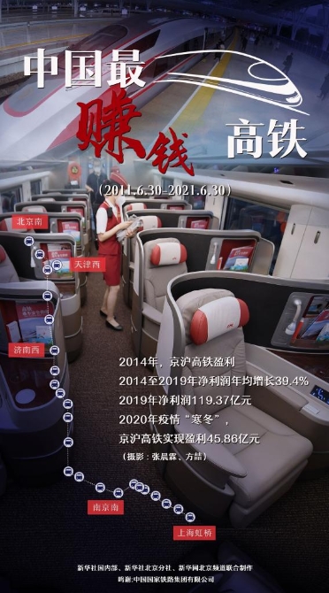 新华社北京6月30日电(记者樊曦、丁静)30日,京沪高铁迎来运营10周年。10年间,京沪高铁在中国高铁发展史上创造多项成绩,飞驰出一道亮丽轨迹。