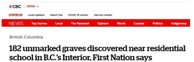 在6月这个加拿大“原住民历史月”的最后一天,一个最新发现再次揪紧了人们的心。加拿大广播公司6月30日报道称,加拿大不列颠哥伦比亚省“下库特内班德”原住民部落宣布,在该省克兰布鲁克市一所原住民儿童寄宿学校旧址附近发现了182处无标记坟墓。