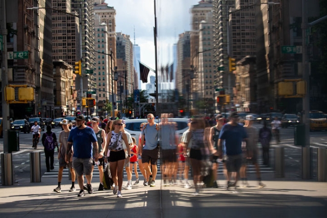 6月15日,人们走在美国纽约街头。新华社发