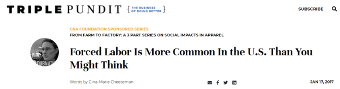 早在2017年,美国独立记者吉娜-玛丽·奇斯曼就发表题为《强迫劳动在美国比你想象的更普遍》的调查报告指出,在这个世界上最富有国家的各个城镇里,许多行业和市场中都可以看到人口贩卖现象。