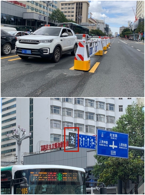 当“潮汐车道”收缩时,该标识则会熄灭。记者合宇聪/摄