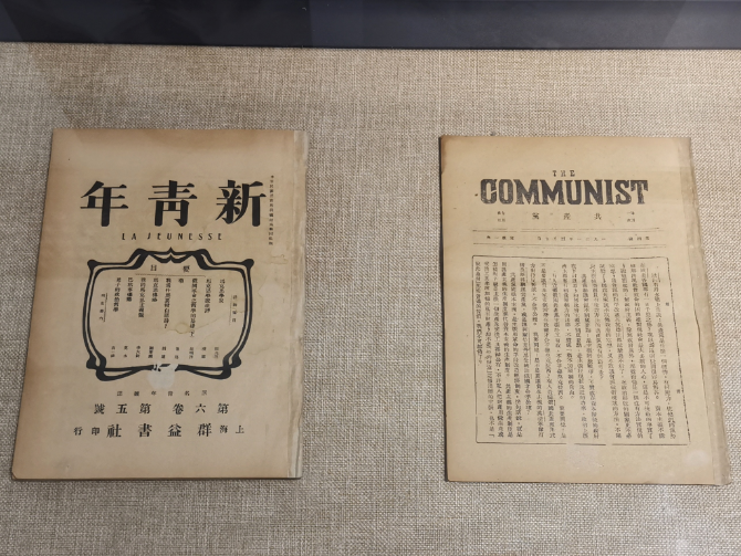主题展展出的《新青年》第六卷第五号和《共产党》月刊(6月28日摄)。新华社记者许晋豫 摄
