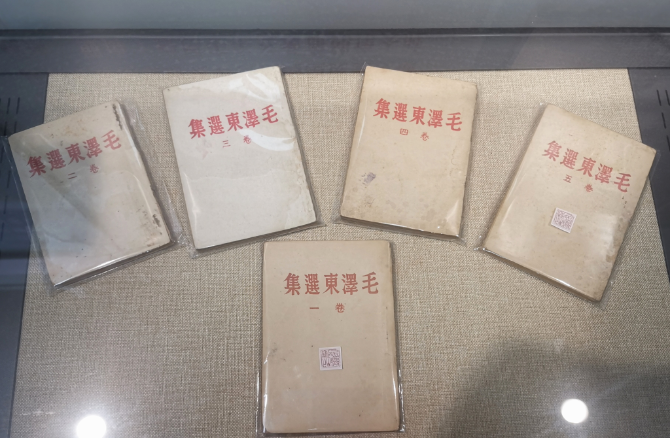 主题展展出的晋察冀日报社出版的《毛泽东选集》(6月28日摄)。新华社记者许晋豫 摄