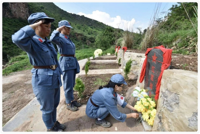 清河村党总支副书记余忠萍身穿红军服装站在队列中,与参加活动的党员干部们一起重温入党誓词。她表示,“红军长征过富民”清河红色体验教育基地的建成,是传承红军精神、发展清河乡村旅游的又一重要举措。通过十大红色体验项目,让更多的人走进清河,重温红色历史,打造清河村“红色旅游”名片,同时也促进了清河村经济、文化的发展。