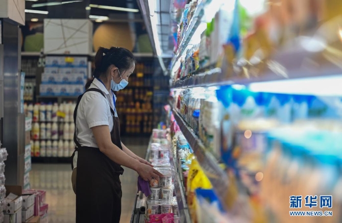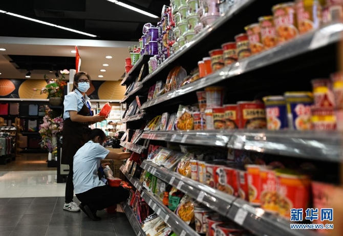 7月7日,工作人员在瑞丽市一家超市内整理货架。新华社记者 王冠森 摄