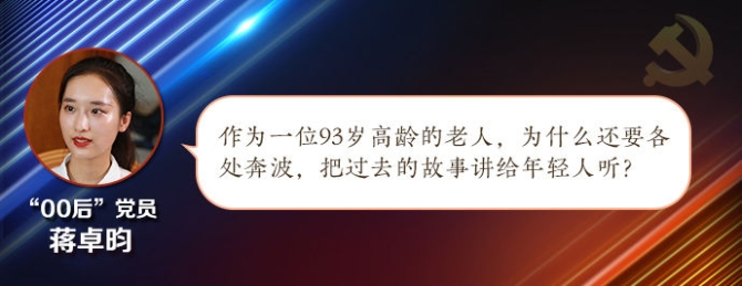 听到这里,蒋卓昀在敬佩之余,心里也有了些许疑问:这位年过耄耋的老人,为什么要不停奔波,坚持把党史故事讲给年轻人听?他的故事,又能给青年党员们,带来怎样的感悟?