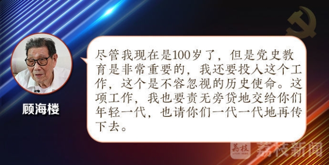 这群老战士中,有一位与党同龄,经历过战火纷飞的年代,现为上海市新四军历史研究会三师分会名誉会长,他就是顾海楼。