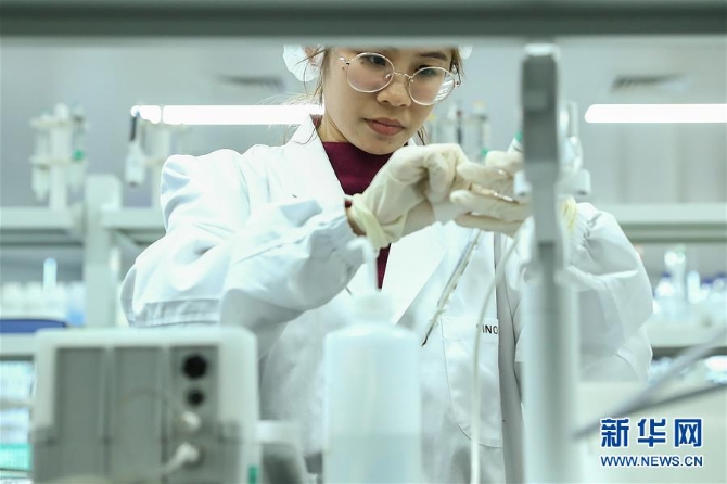 2020年12月23日,科兴中维工作人员在新冠病毒灭活疫苗质检实验室内进行检验工作。新华社记者 张玉薇 摄