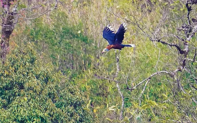 拍摄到三只棕颈犀鸟