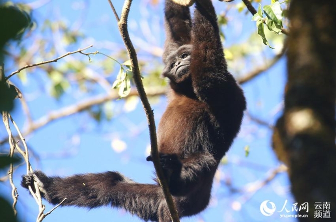 有这样一个种群,叫天行长臂猿——首个被中国科学家命名的猿类物种,数量不足150只,不足大熊猫数量的十分之一,分布在云南高黎贡山国家级自然保护区和德宏州盈江县的部分原始森林里,被世界自然保护联盟(IUCN)确定为“濒危”。