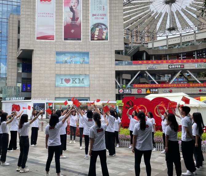昆明信息港讯 记者李红鸾 为庆祝中国共产党百年华诞暨“七一”建党节,凝聚盘龙区广大干部职工向第二个百年奋斗目标进军的磅礴力量,弘扬党的优良传统,充分展示盘龙社工爱党爱国热情和昂扬向上的青春力量。近日,昆明市盘龙区总工会“红船领航·建党百年工会行”系列活动之“工会社工新力量 最美歌声献给党”红歌快闪活动举行。
