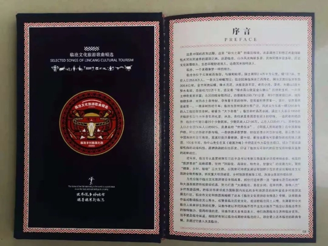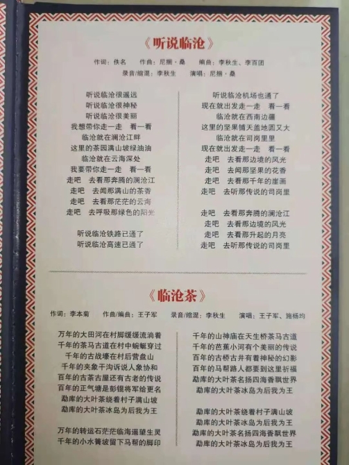 为充分展示临沧文化旅游建设丰硕成果,抓住打造世界一流“健康生活目的地牌”和大滇西旅游环线建设机遇,努力打造”大美临沧,美在乡间;花开四季,香飘八方”乡村旅游品牌,把临沧市建设成为国际国内知名的乡村旅游目的地和云南省乡村旅游发展先行区,临沧市文化和旅游局派专人多次深入各县(区)开展调研,对全市文化旅游歌曲进行认真遴选,优中选优,编辑了这本包含《阿佤人民唱新歌》《月亮升起来》《火塘边》《彩虹之路》《百年梦想》《临沧茶》《听说临沧》《出发临沧》《永远跟着共产党》《民族团结一家亲》《党的光辉照边疆》等55首歌曲的U盘碟片。