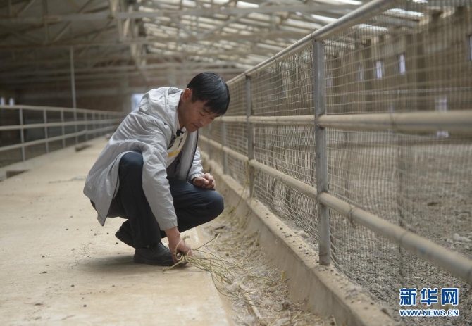 7月8日,在青海省海南藏族自治州共和县,牧民向占魁在清理羊圈中的杂草。新华社记者 张曼怡 摄