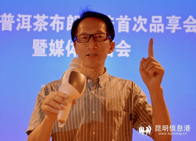 茶企代表孙跃铭发言,布朗山是全国唯一的布朗族乡,有布朗族人在的地方就有千年古茶园。岩三扁社长是我们茶人学习的榜样,能从茶山走下来,又能走到昆明和全国的茶叶市场,每一步都是不容易的。刚才细细品味了他做的“那年”这款茶,纯正、纯味,品质过硬,确实是真正的布朗味。“那年”、“那山”、“那人”这几款茶的包装设计非常有特色,有抒情的味道,让我们不禁忆起逝去的岁月的味道。