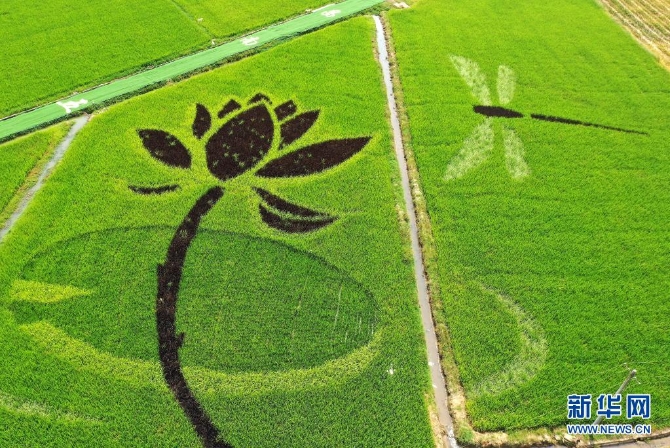 这是7月16日拍摄的彩色稻田画(无人机照片) 新华社记者 万象 摄