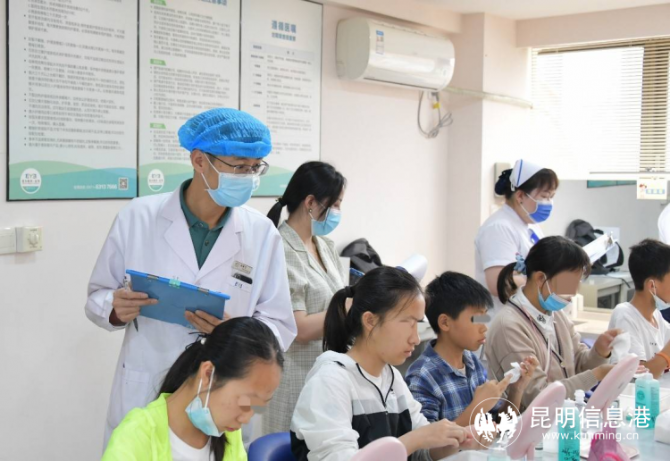 正值暑期,昆明市内各大医院眼科掀起了一波“儿童青少年配镜潮”。记者从昆明爱尔眼科医院了解到,该院小儿眼科和眼视光科的日门诊量相较平时增长了四至五倍,且绝大部分都是儿童青少年近视患者。眼科专家提醒,家长切记不可轻信市面上“近视治愈”“降低度数”等宣传,一旦发现孩子有视力不佳等问题,应及时到正规的眼科医疗机构进行检查。