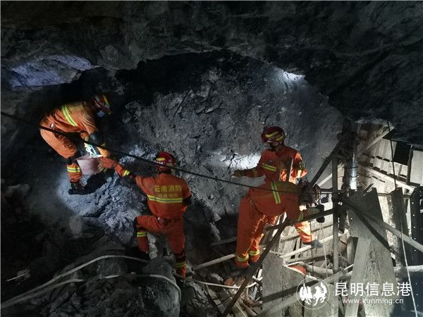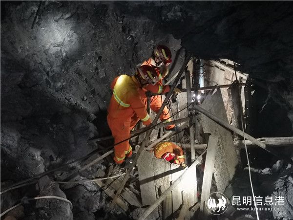 昆明信息港讯 记者劳学丽 通讯员李梦菲 刘晓龙 7月19日22时40分,昭通市永善县消防救援大队接到报警称,位于大兴镇金沙村一铅锌矿洞发生塌方,导致一名矿工被埋压。接到报警后,大队出动1车10人前往救援,并向昭通市消防救援支队指挥中心报告,支队指挥中心随即派出昭阳区消防救援大队1车6人,联系矿山救护队1车5人前往增援。