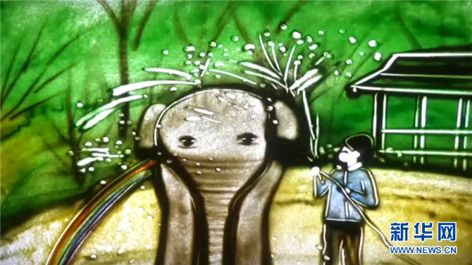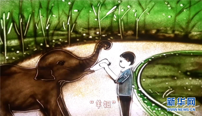 【沙画看大象】再现小象“羊妞”与“象爸”的晨与昏