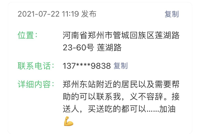 信息发布者姬先生:刚才在郑州东站附近有几个人在路边过不去,我开车带他们过了马路,又送人到某某地方,给需要水的人提供了些水。