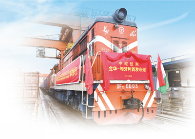 中欧班列已成为新形势下国际产业链供应链的重要载体。图为2021年6月7日,中欧班列“金华—匈牙利首发专列”从“义新欧”金义新区平台鸣笛启程。胡肖飞摄(新华社发)