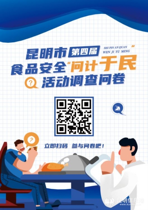 据悉,昆明市第四届食品安全“问计于民”大型调查活动还在火热进行中。调查结束后,我们将对市民最关心的食品安全问题、最想抽检的食品种类和最想参观的食品企业进行统计,在来年的工作中结合日常监管及食品安全“你点我检”“六进”等主题活动一一回应。还未参与问卷调查的市民可扫码参与,说出你最关心的食品安全问题,为昆明市开展食品安全工作建言献策。