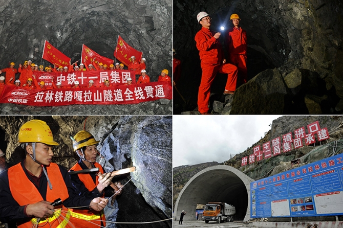 铁路建设者集成运用我国铁路建设实践经验,对“强岩爆、高地温、冰碛层、风积沙、大变形”等工程难题进行攻关,安全优质建成了47座隧道、121座桥梁。其中包括国内最大埋深的巴玉隧道、世界上罕见的高地温桑珠岭隧道和创高海拔、大跨度世界第一的藏木雅鲁藏布江特大桥等,创造了我国乃至世界铁路建设史上的一个又一个奇迹。