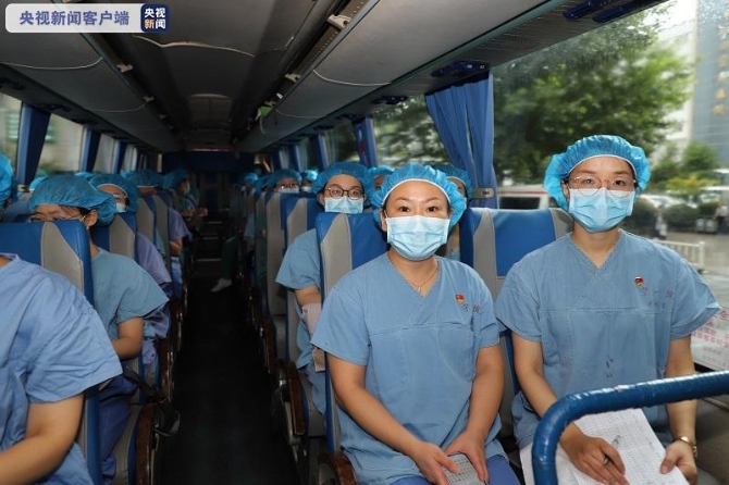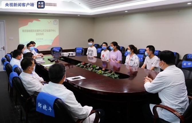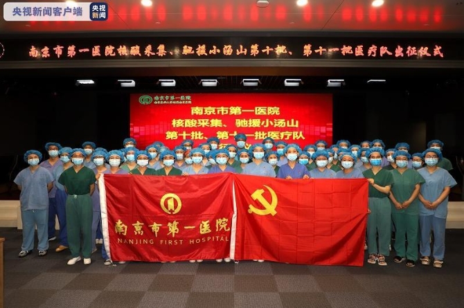 根据南京市疫情防控指挥部的统一安排,7月26日,南京鼓楼医院麻醉手术科汤壮、朱轩成,心血管内科徐华丽、消化内科荚玉云、妇科顾红等5位医务人员驰援俗称“南京小汤山”的南京市公共卫生中心。五名医护人员中,其中4人是江苏援武汉抗疫医疗队队员,有丰富的新冠肺炎重症患者救治经验。鼓楼医院为5位医务人员举行了简短的出征仪式。