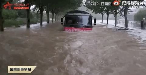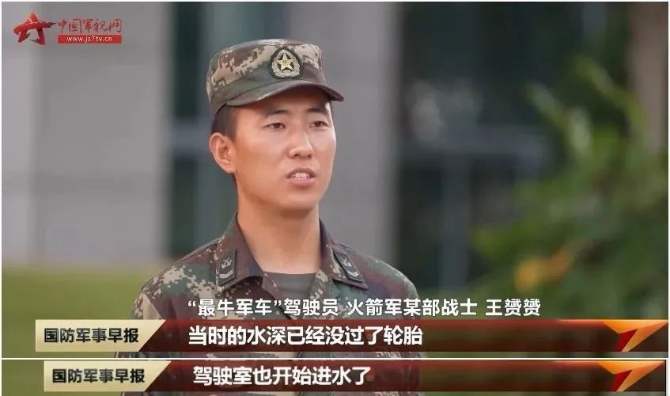 一条洪水中的“最牛军车”视频刷屏网络