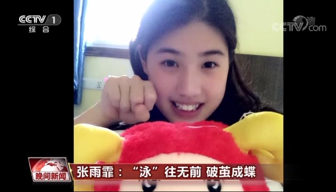 中国游泳队队员 张雨霏:有时候睡觉都会被肌肉的酸疼给痛醒。天降大任于斯人也,能承担起这样最艰苦的项目,说明我的能力也大了。