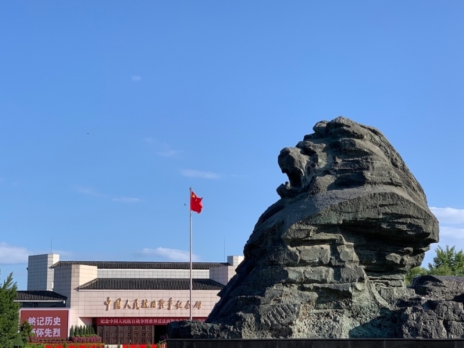 中国人民抗日战争纪念馆前,屹立着巨型雕塑:醒狮。(总台央视记者程铖拍摄)