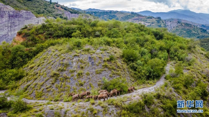 8月9日,象群穿过云南省玉溪市元江县境内的丛林。新华社记者 江文耀 摄