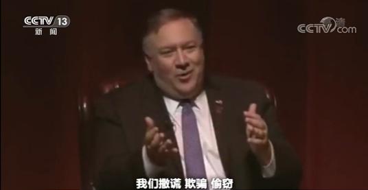 美国前国务卿 蓬佩奥:西点军校的格言,首先是什么,要求我们绝不能撒谎、欺骗、偷窃,也不能容忍这样的人。但是当我当上中情局局长的时候,我们撒谎、欺骗、偷窃,我们还有整套的培训课程。这就提醒你,这才是美国的荣耀。