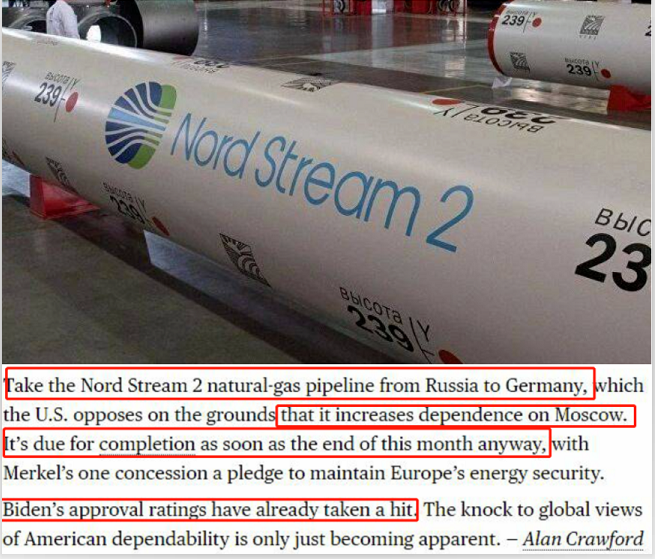 本次会谈的另一议题就是“北溪-2”天然气管道项目,它对俄德两国均具有重要意义。在俄德两国领导人的共同努力下,“北溪-2”天然气管道项目胜利竣工指日可待,美国用了很多办法来阻止项目推进,但都未奏效。彭博社《全世界都在问美国的承诺值多少钱》一文中指出,美国一直反对“北溪-2”项目,理由是它增加了对莫斯科的依赖。但无论如何,该项目将于本月底完工,而默克尔做出的唯一让步是承诺维护欧洲的能源安全。