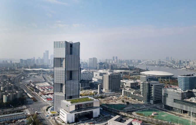2020年12月17日,新开发银行总部大楼竣工仪式在上海举行。这是12月17日在上海世博园区拍摄的新开发银行总部大楼(无人机照片)。新华社记者 方喆 摄